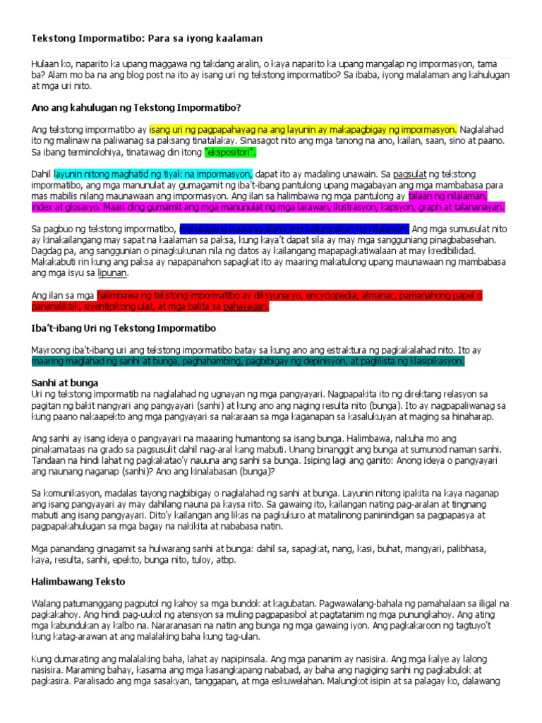 Mga Tala Sa Tekstong Impormatibo